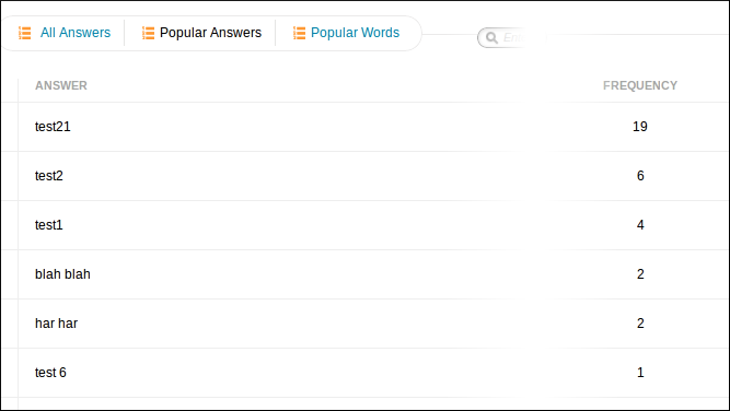 “Popular Answers” orders the answers by the frequency they appear in the result set. It matches complete answers including spaces.