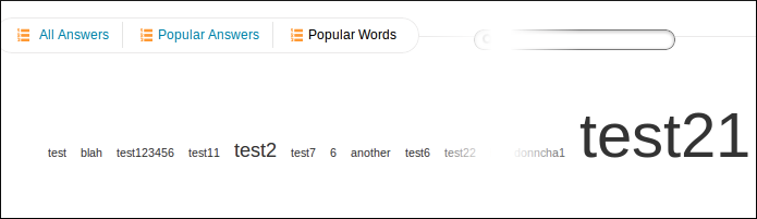 “Popular Words” is a word cloud. It displays a cloud of words with the most frequently seen words larger than the rarer ones. Hover over a word to see how many times that words appears in the results.