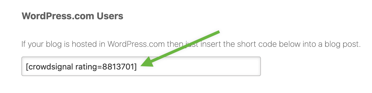 If you have a WordPress.com site, you can embed the rating using the WordPress.com shortcode. Copy the shortcode and paste it into the location you’d like to see the rating on your website: