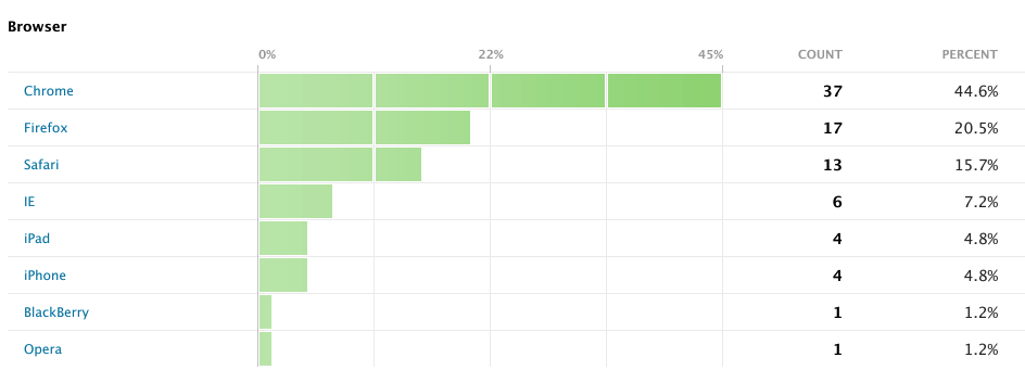 Finally, you can also see the browsers participants used to complete your survey. Remember that you can click on any browser to drill down further: