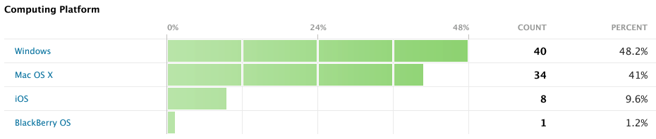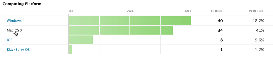 Note, that if you want to drill down to learn more about any Computing Platform or Browser, you can click on any item to learn more. Here, we want to see the breakdown of participants who said they were using Mac OS X: