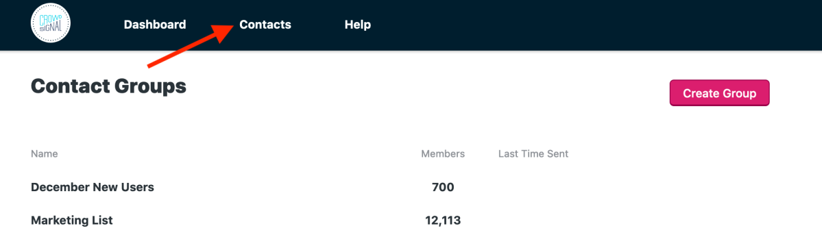 To upload your file, click on the Import button on the top right hand corner of the Contact Groups page:
