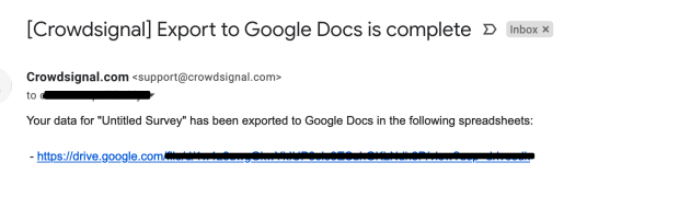 When your data is ready, you’ll receive an email with a link to your data in Google Docs: