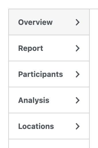Keep in mind that Surveys and Projects have both an Overview summary report and specific sections. Choose the data you want to export by heading to one of the report sections: