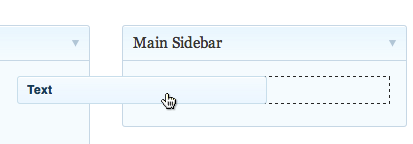 Now, login to your WordPress site. From under the Appearance menu, select Widgets. On the Widgets page, click and drag a Text Widget to your Main Sidebar area: