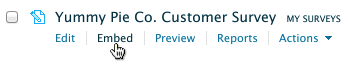 Once you’ve created your survey, hover over the title of the survey in your dashboard and click on Embed: