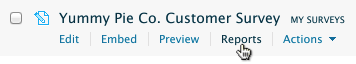 Hover over the title of your survey in your dashboard, and click on Reports: