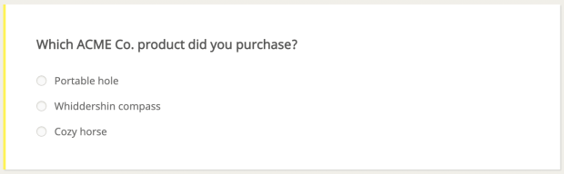 The multiple choice question type is a very useful question type that allows you to ask your audience for an answer from a restricted set of choices.
