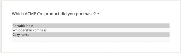 This allows any number of answers to be selected, with answers shown in a list. Participants can then hold down the CMD or CTRL key in Mac or Windows, respectively, to select multiple options.