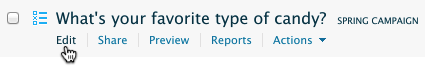 If you’ve already created a poll, you need to be sure that you’ve selected Narrow for your poll width so that it fits nicely in your sidebar. To do that, hover over the title of your poll and click on Edit: