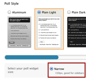 Scroll down a bit, beneath the style selections to select Narrow for your poll’s width. Be sure to scroll all the way down to the bottom of the page and click on the blue Update Poll button for your changes to take effect.