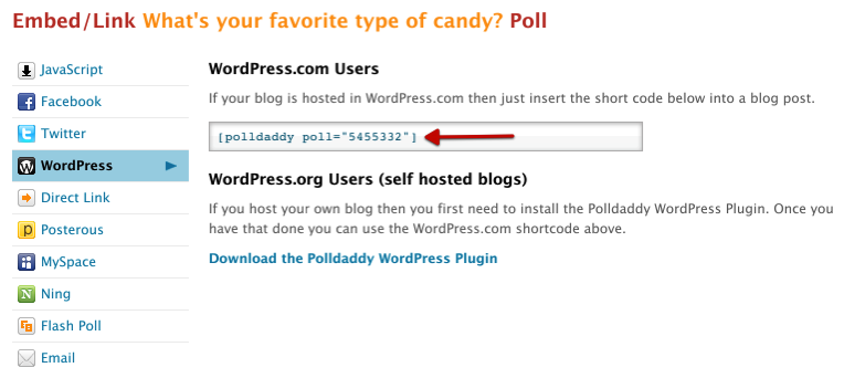 Now, login to your WordPress site. If you have a self-hosted WordPress.org site, you’ll need to be sure that you have the Polldaddy Plugin installed.