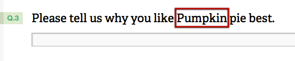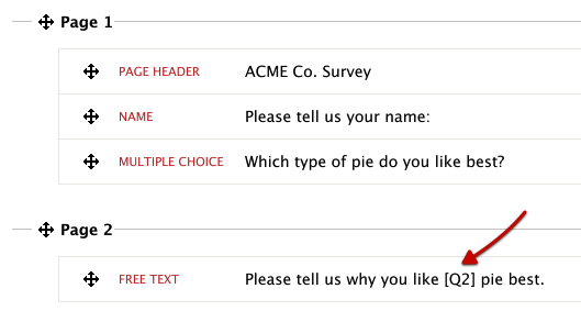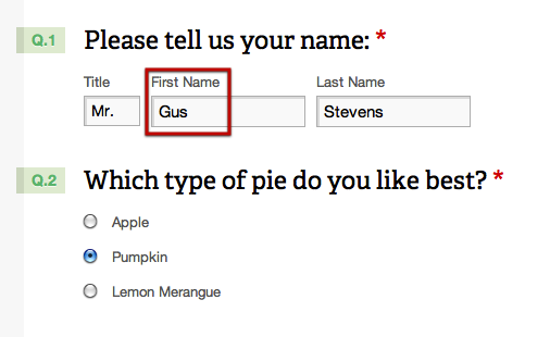 Now the answer that Gus supplies in question two, will automatically be piped into the question text for question three: