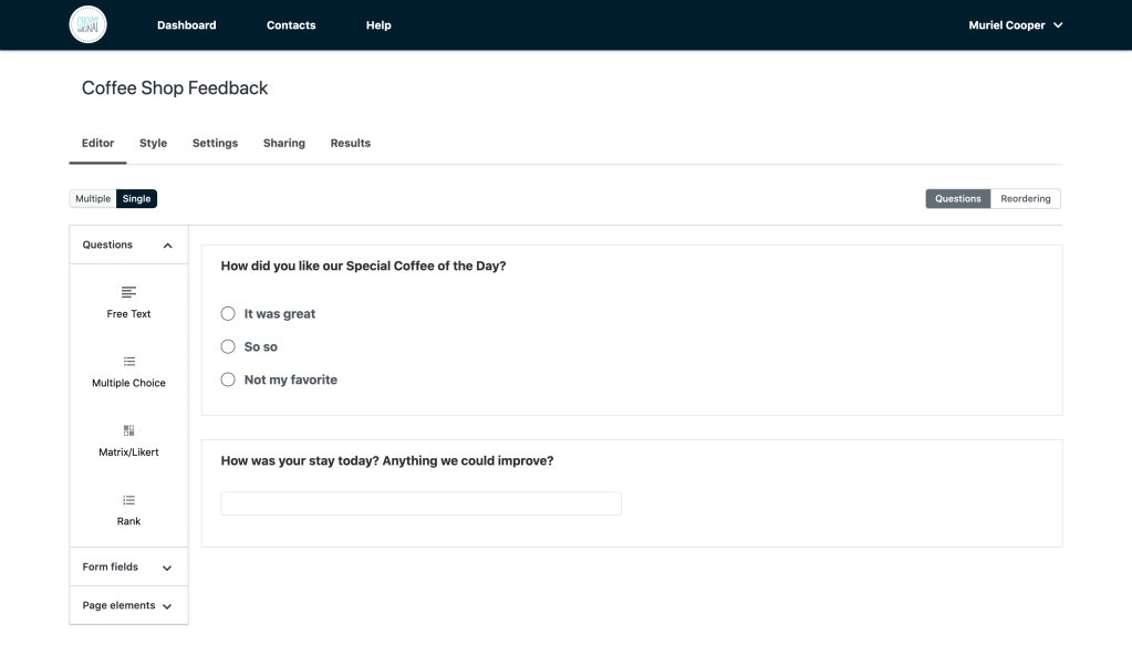 Create a survey with Crowdsignal (free is fine!). Keep it short and simple, with two or three questions at most. A good mix is one rating scale (easy and fast to answer) and one open ended question (gives your customers the chance to let you know some details). Then let’s create the QR code: