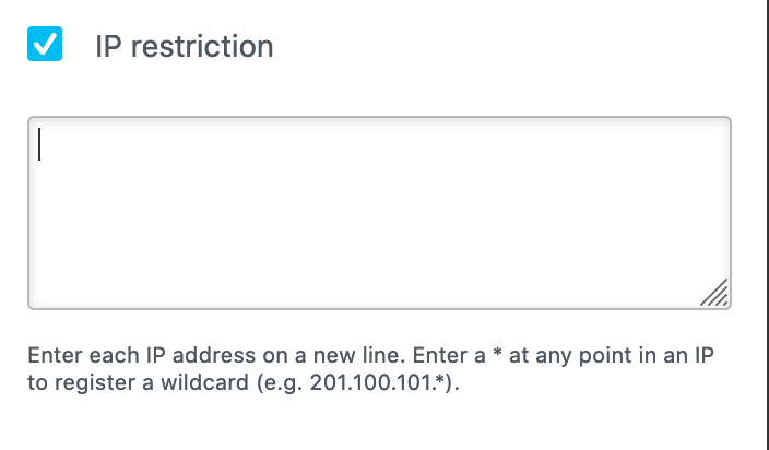 To restrict your participants to a pre-defined set of IP addresses, you can enable IP restriction, and enter each IP address on a separate line: